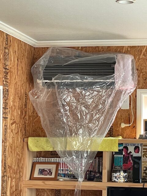 今回のエアコンの取付位置が左の入隅に近く内部の部品を外す事が出来なかったので