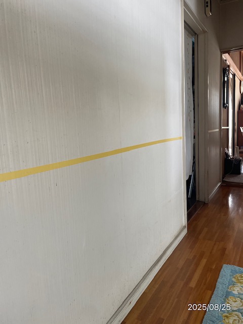 踏み板をサービスでプレゼントしたので玄関ホール壁面に竪の手摺りと