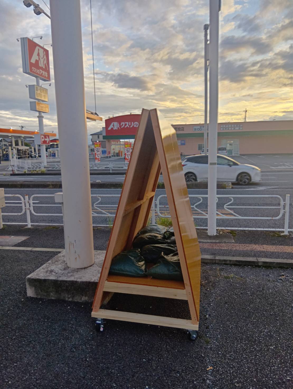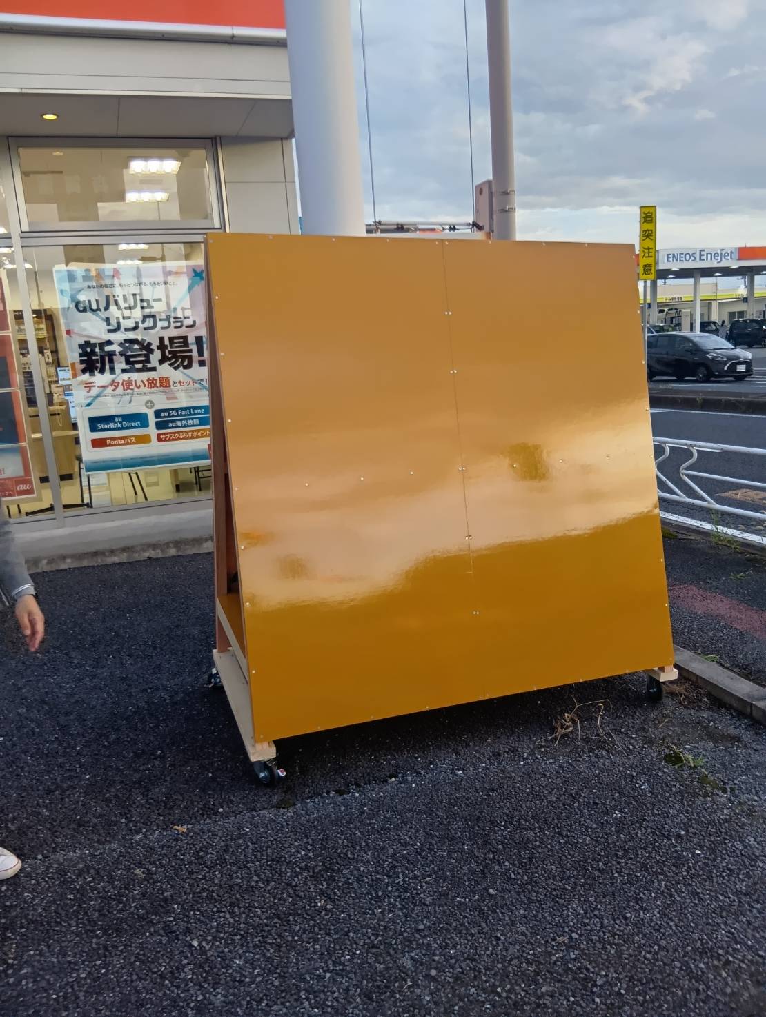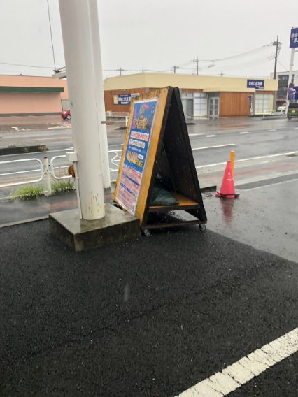 auショップ様の店前に置いてある看板が雨風で劣化してしまい 新しい看板を作って欲しいとご依頼です。